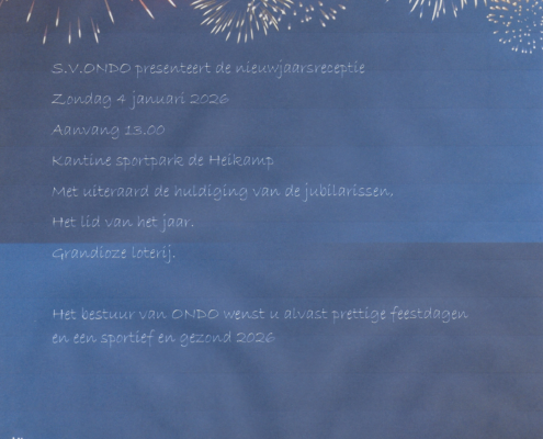 Op zondag 4 januari 2026 vindt de nieuwjaarsreceptie bij SV ONDO…
